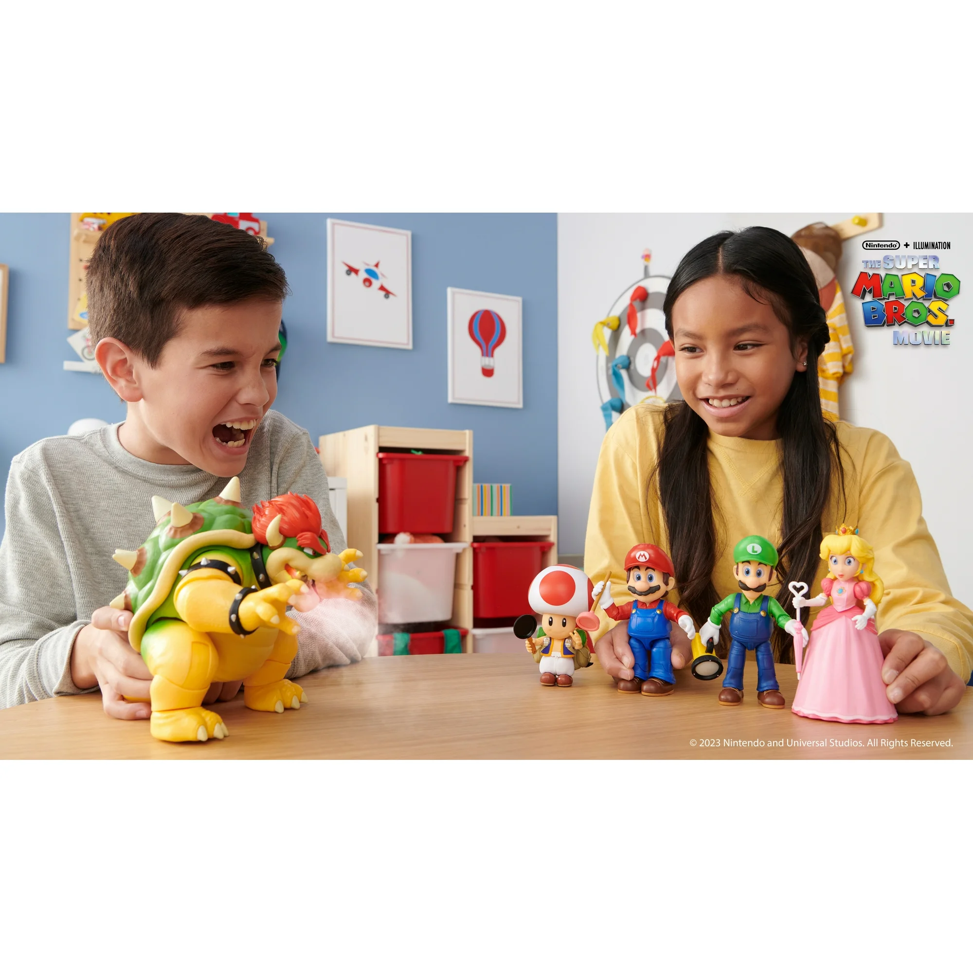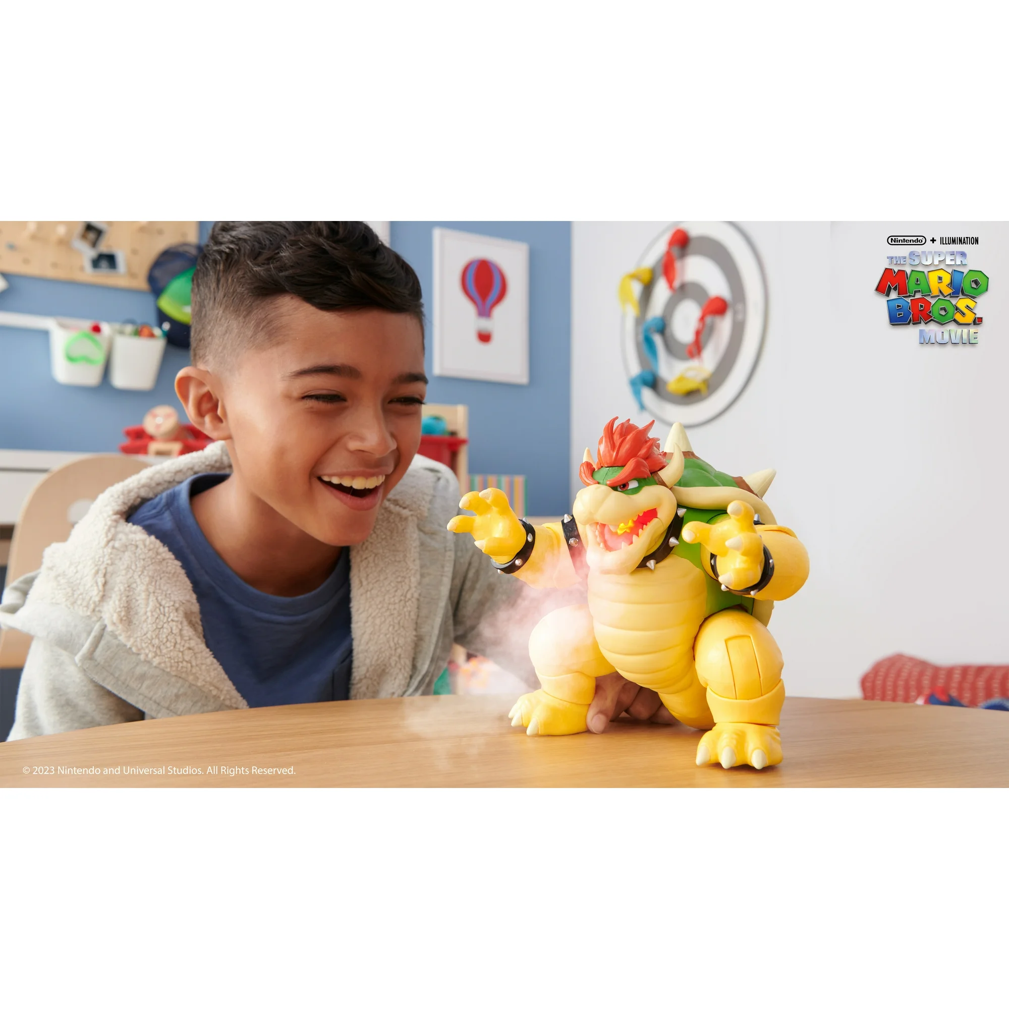 - Bring The Super Mario Bros. Movie 7 inch Bowser action figure to life with his fire breathing effect!