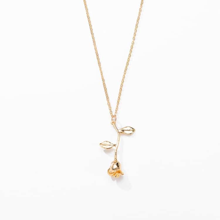 Valentines Day Gift Rose Flower Pendant Jewelry Chain Necklace (Gold)