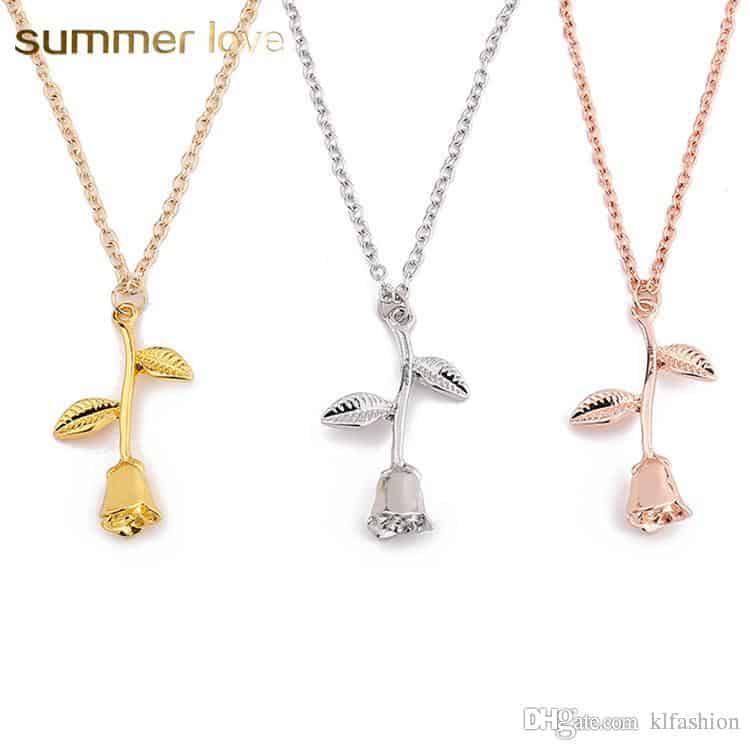Valentines Day Gift Rose Flower Pendant Jewelry Chain Necklace (Rose Gold)