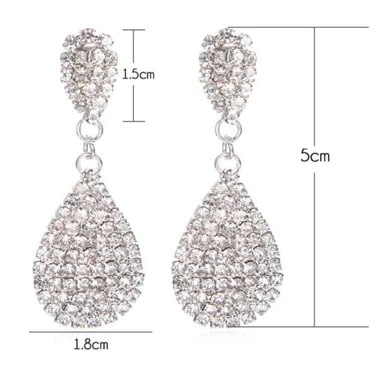 Water Drop Shaped Women Dangle Earring 1 Pair Fashion And Luxury Inlaid Top Quality Rhinestone Around (Silver)