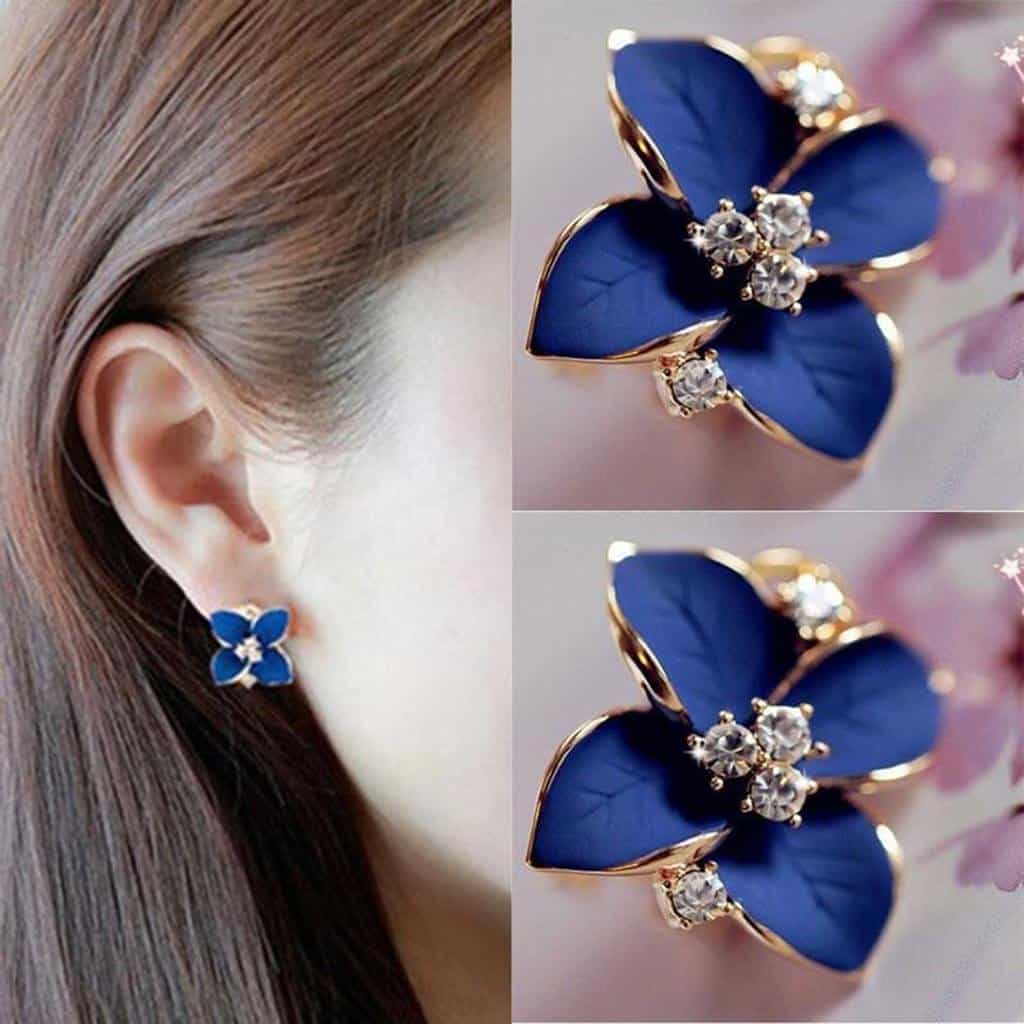 Women Camellia Of Design Bohemian Earrings(Blue with Colorful crystal)