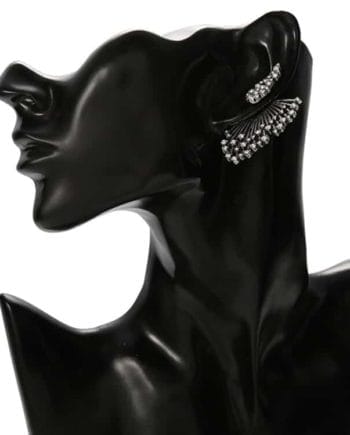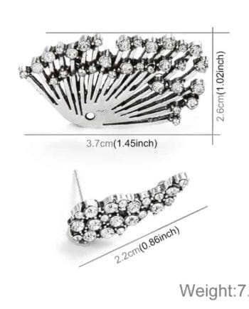 Women Diamond-shape Silver Flower Fan-sharped Asymmetric Stud Earrings