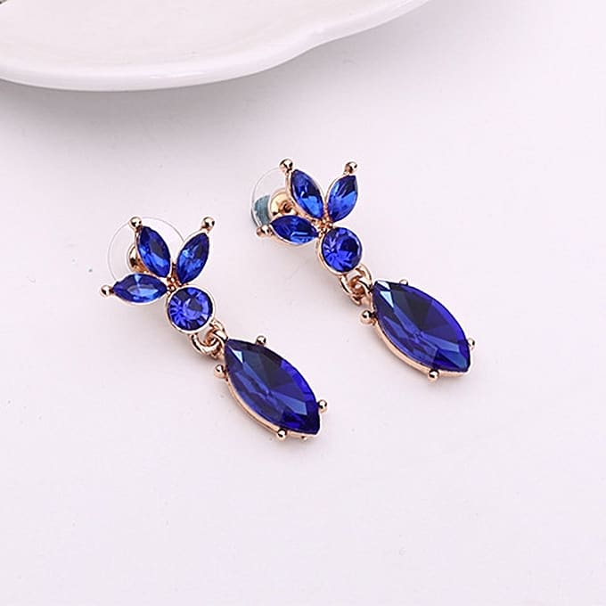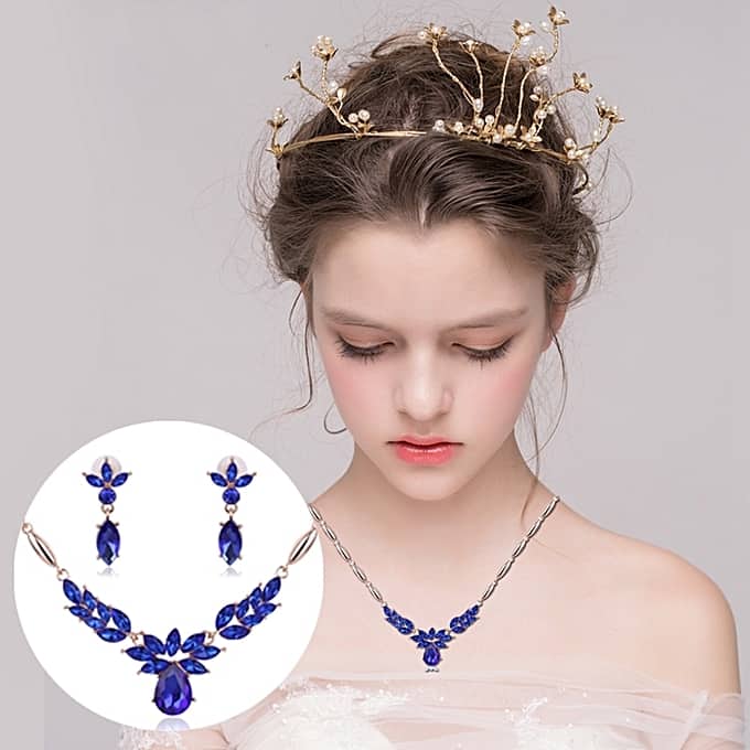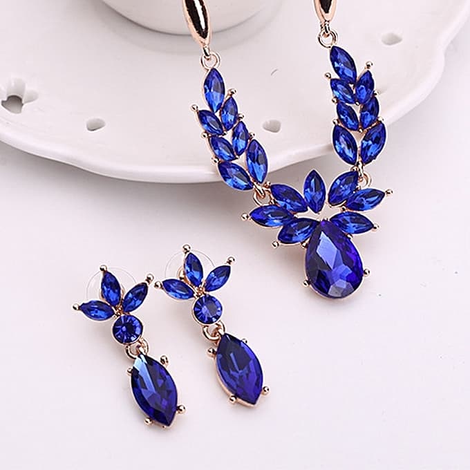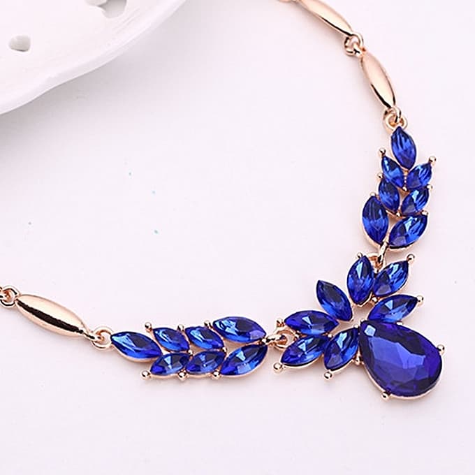 Wreath Diamond-shape Necklace Earrings Ladies Innovative Novel Fashion Jewelry Set (Blue)