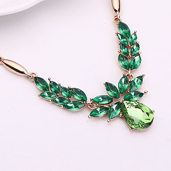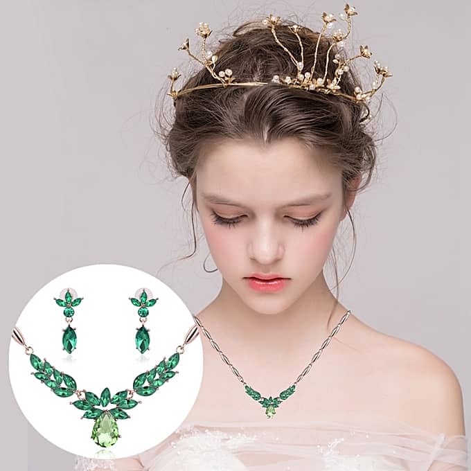 Wreath Diamond-shape Necklace Earrings Ladies Innovative Novel Fashion Jewelry Set (Green)