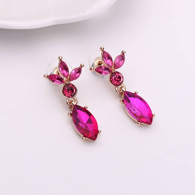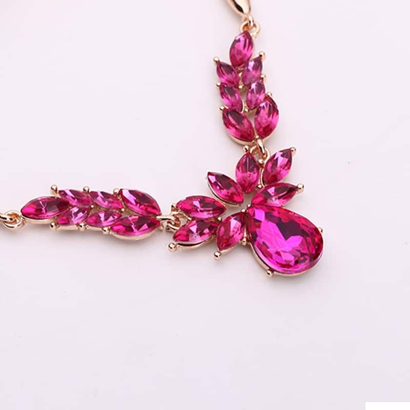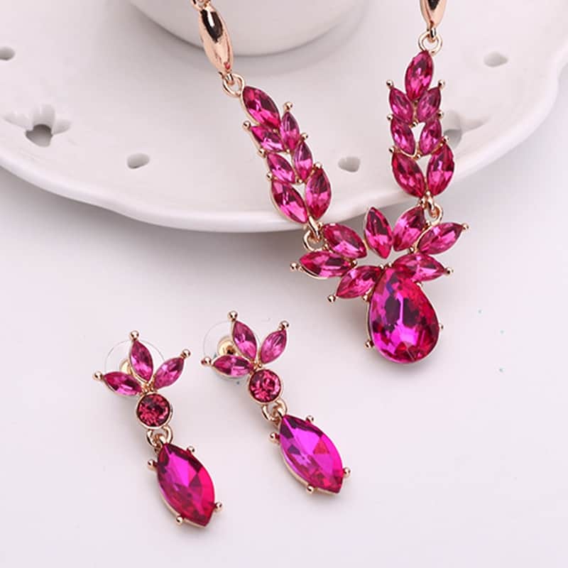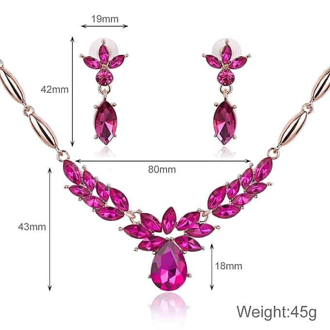 Wreath Diamond-shape Necklace Earrings Ladies Innovative Novel Fashion Jewelry Set (Rose Red)