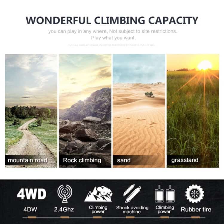 1. Wonderful climb ability. You can play in any where you want. Fit for mountain road. Rock climbing.sand. Glassing ground .
