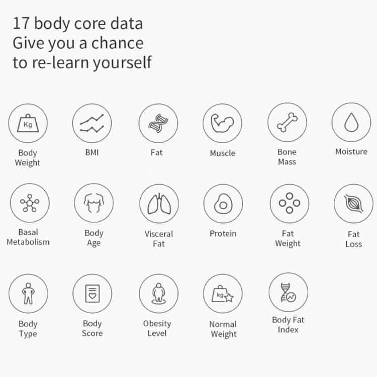 1. A smart body fat scale that can monitor 17 core body data such as weight, fat, moisture and muscle.